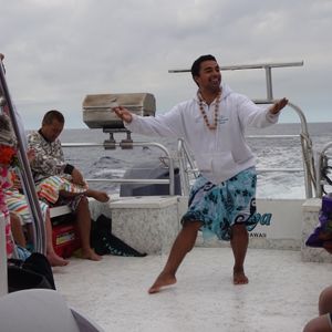 港に戻る間もスタッフが、ウクレレやフラで楽しませてくれるサービス精神は感心しました。