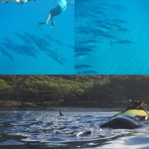 イルカに会えるか不安でしたが‥実際にたくさんのイルカにはもちろんのこと。クジラにも出会えてとても嬉しかったです!!1月なのでとてもウェットスーツを着なければ海に入れない寒さでしたので、料金の中に最初からウェットスーツレンタル代の10ドル込みで良いのでは?!と思いました。海の中はとても透き通っており、綺麗な魚にも出会えました。船の上からはウミガメにも出会えました*