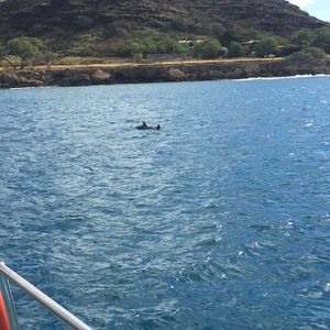 イルカがいる場所へ瞬時に移動して効率よく手際よくイルカに会えるようにして貰い、無事遭遇する事が出来ました。もっとそばで泳げると思っていたのですが、割と遠目で見る感じで共に泳ぐというのとは違ってました。野生のイルカなのでストレスを貯めないように配慮もあると思うのですが。イメージとは違ってました。船上では酔った人も数人いましたが、それも手際よく手当してました。またBGMやハワイアンの踊り、スタッフが道中盛り上げてくれ楽しかったです。泳ぎが得意でないと楽しめないです。