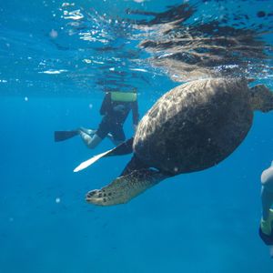 Completely unbelievable! This one adventure started off with a 10-15 min ride on the catamaran out to turtle canyon. We then put on life vest and our masks to jump out. Since our swimming skills are like zilch, we were able to stay afloat by inflating our vest a bit. Johnny and our “lifeguard” took good care of us and made sure we were safe while we float around snorkeling. The view was breathtaking as we glance down and see miles down into the world below with huge sea turtles and colorful fishes and scuba divers around the coral reef. Highly recommend!