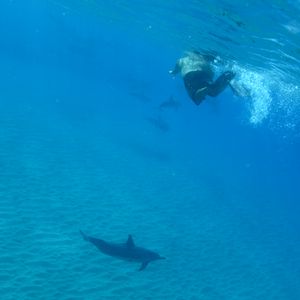 イルカと泳ぎたくてこのツアーに参加しました!今まで参加したシュノーケルとは全然違ってとても体力のいるツアーです!でもこれはツアーの目的であるイルカと泳ぐため!イルカと泳ぎたくて全力で泳ぎました☆とっても疲れましたがたくさんのイルカと泳ぐことができ、また亀にも遭遇してとても楽しい思い出ができました♪船の上で食べたスパムおにぎりがとっても美味しかったです(^_^)