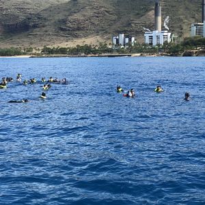 We boarded the Holokai Catamaran and quickly arrived at a point where we could see the beachside hotels of Waikiki. During the ride, we received explanations in English and were given life jackets. When I asked if wearing a life jacket was mandatory, I was told it wasn't required, but it was at our own risk. There was no worry about not seeing sea turtles, as they were coming up to the surface to breathe all around us. There was also a tour company nearby doing scuba diving. One slight disappointment was that there weren't many colorful tropical fish or coral at this point. However, there was plenty of time to enjoy snorkeling. After getting back on the boat, we were offered chips and chocolate (free), and drinks like guava juice and beer (for a fee) as we slowly began sailing. Since it was December, we went whale watching and saw a few in the distance. Given the price, the service was good, and I was satisfied with the experience. I highly recommend it!