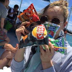 The staff were all cheerful and wonderful people. They made us laugh so much that I didn’t feel seasick at all. The cheeseburger with pineapple we had on the boat was delicious too.
