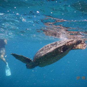 嫁の海ガメを見たいという無理なお願いにも快く引き受けて下さり、他のツアーでは行けないようなスポットへも案内してくれました。泳いでいるカメは見られませんでしたが、ガイドさんの努力のお陰で岩の上で寝ている姿をしっかり見る事ができました。