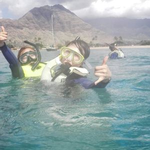 せっかくハワイに来たのだから、と娘(6歳)と二人で参加しました。実を言うと、海が少し怖い娘は、内心ビクビクしていましたが、現地のスタッフの方々の優しく、細やかなお心づかいのおかげで満喫できました。最後はすっかりなついていました。