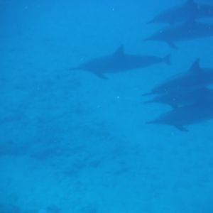そう言って10分くらいでイルカの群れ発見‼︎イルカたちがソディアックすぐそばまで来て泳いでいました。海の透明度が悪くハッキリは見えませんがイルカの魚影が過ぎていくのを見れました。