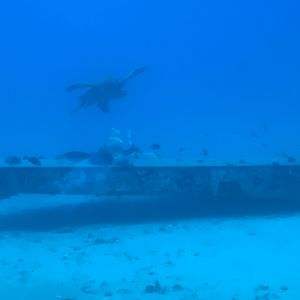 沈没船などが漁礁になって、魚が沢山いました。残念ながら光があまり届かないせいか、カラーで見えないのが残念でした。カメがいました、潜水艦に乗るまでにクジラが見れました。