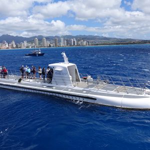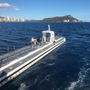 You will travel to the submarine by a larger ferry from the pier and board the submarine that has surfaced. The journey to the submarine feels like a cruise with a view of Diamond Head. The boat may sway a bit, so those prone to seasickness should be cautious.