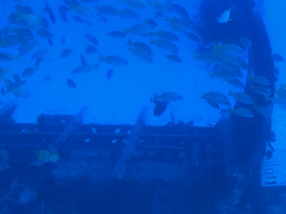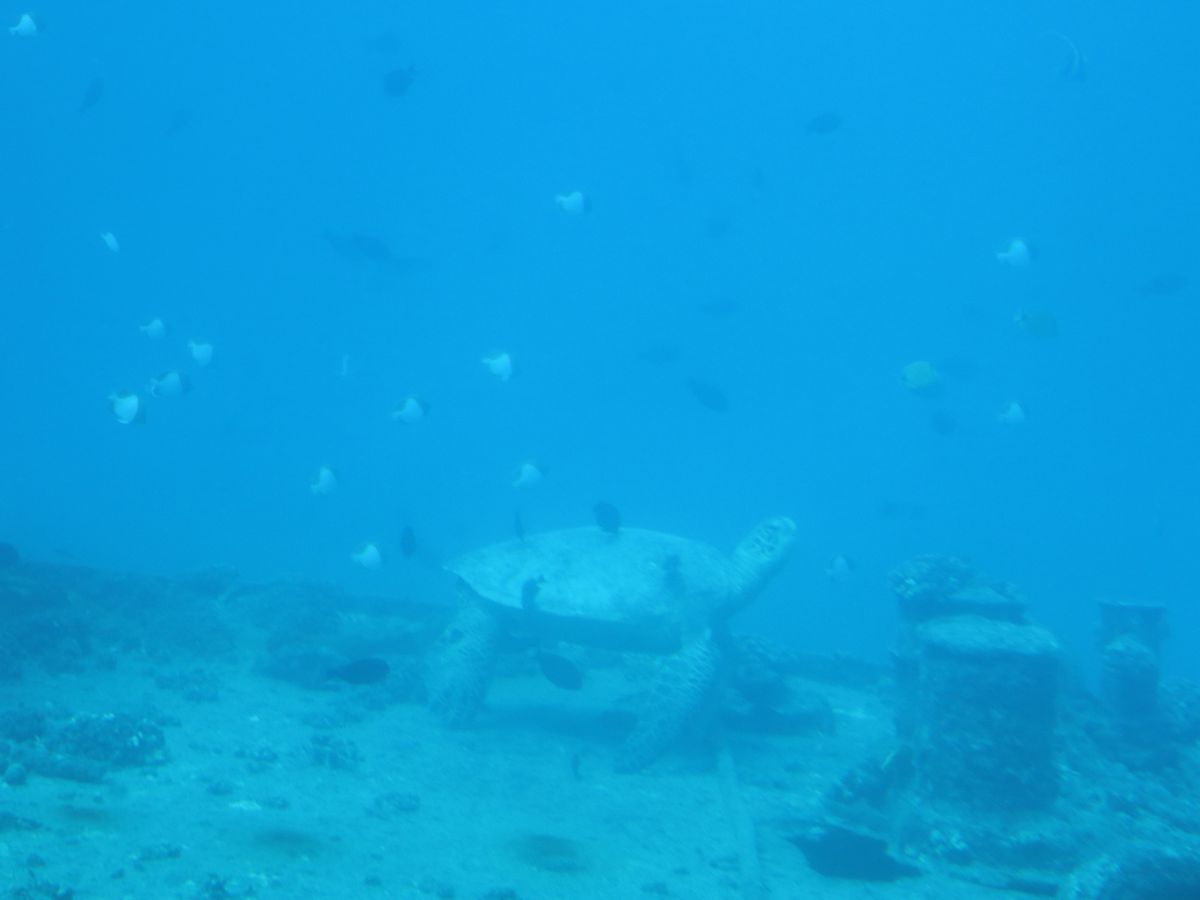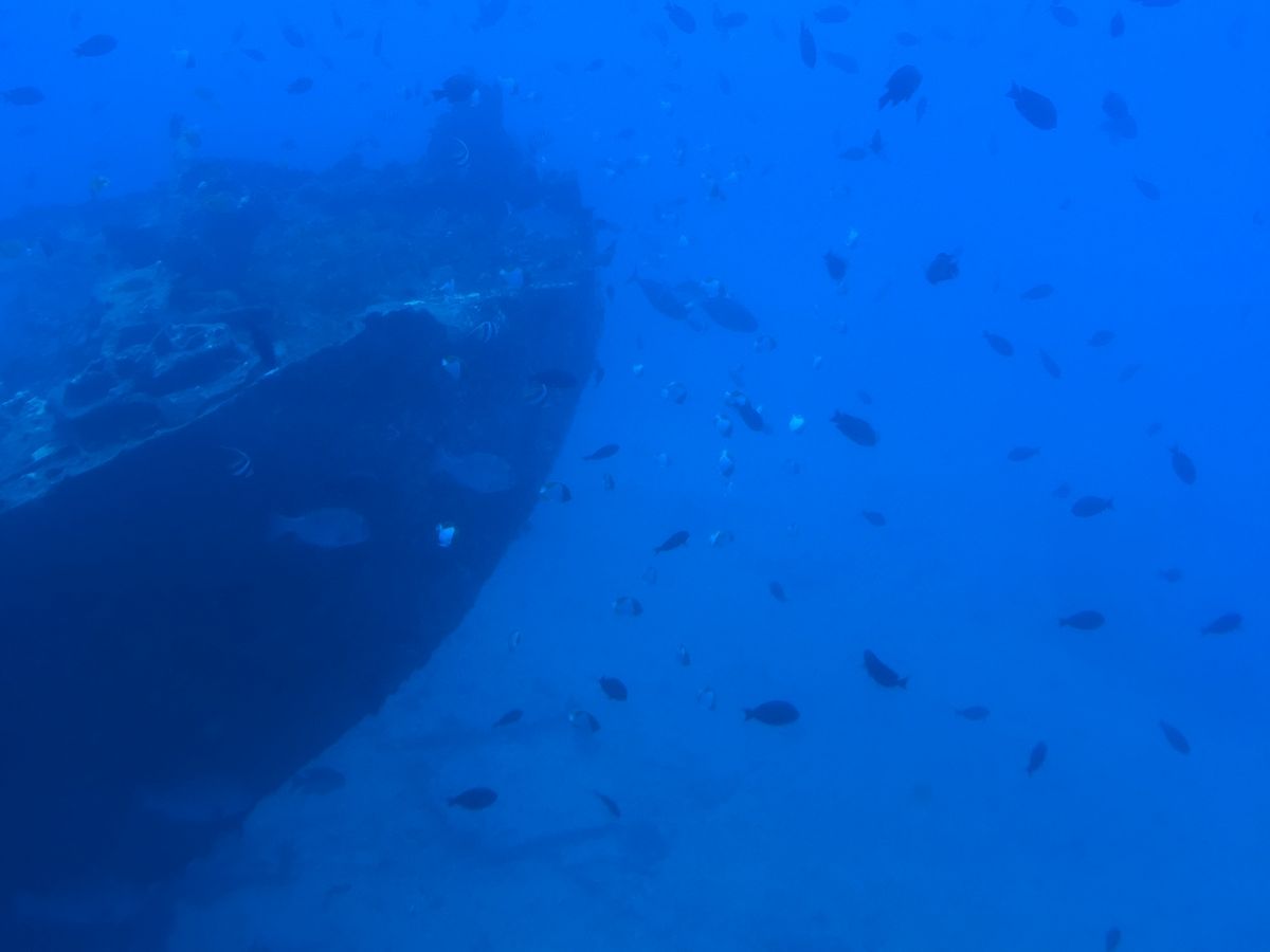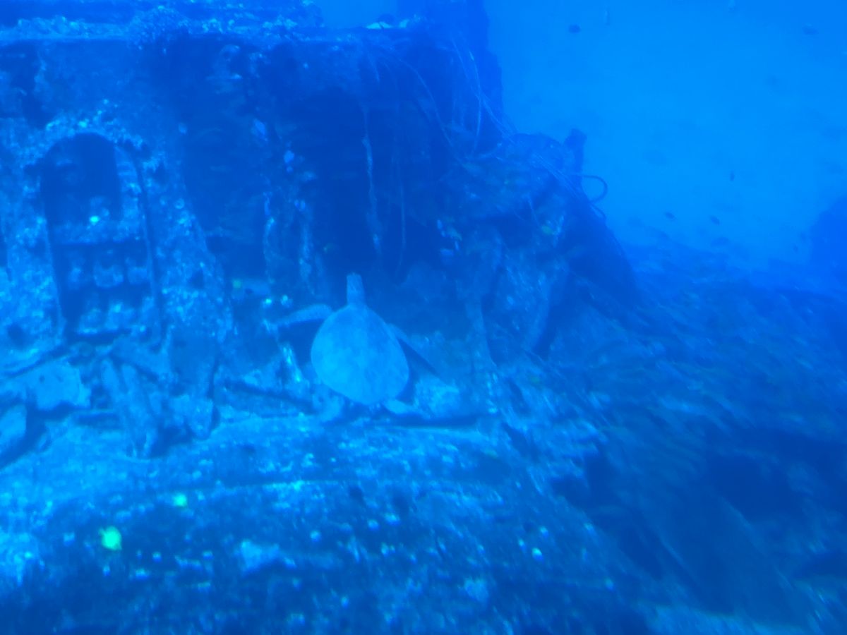 Diving down to 100 feet, we could see the sunken ship and artificial coral reefs. Around them, many fish, sharks, and turtles swam gracefully. It seemed like the kids really enjoyed this first-time experience.