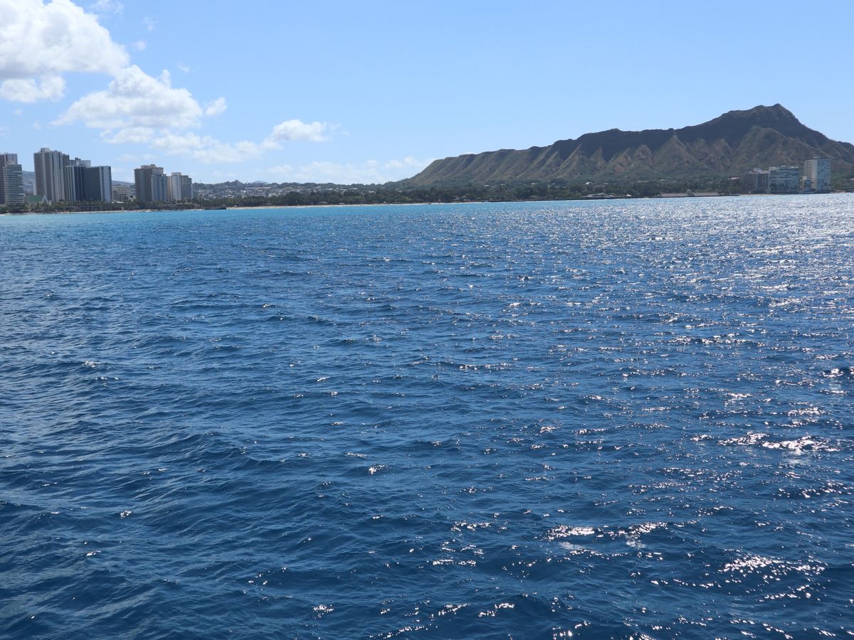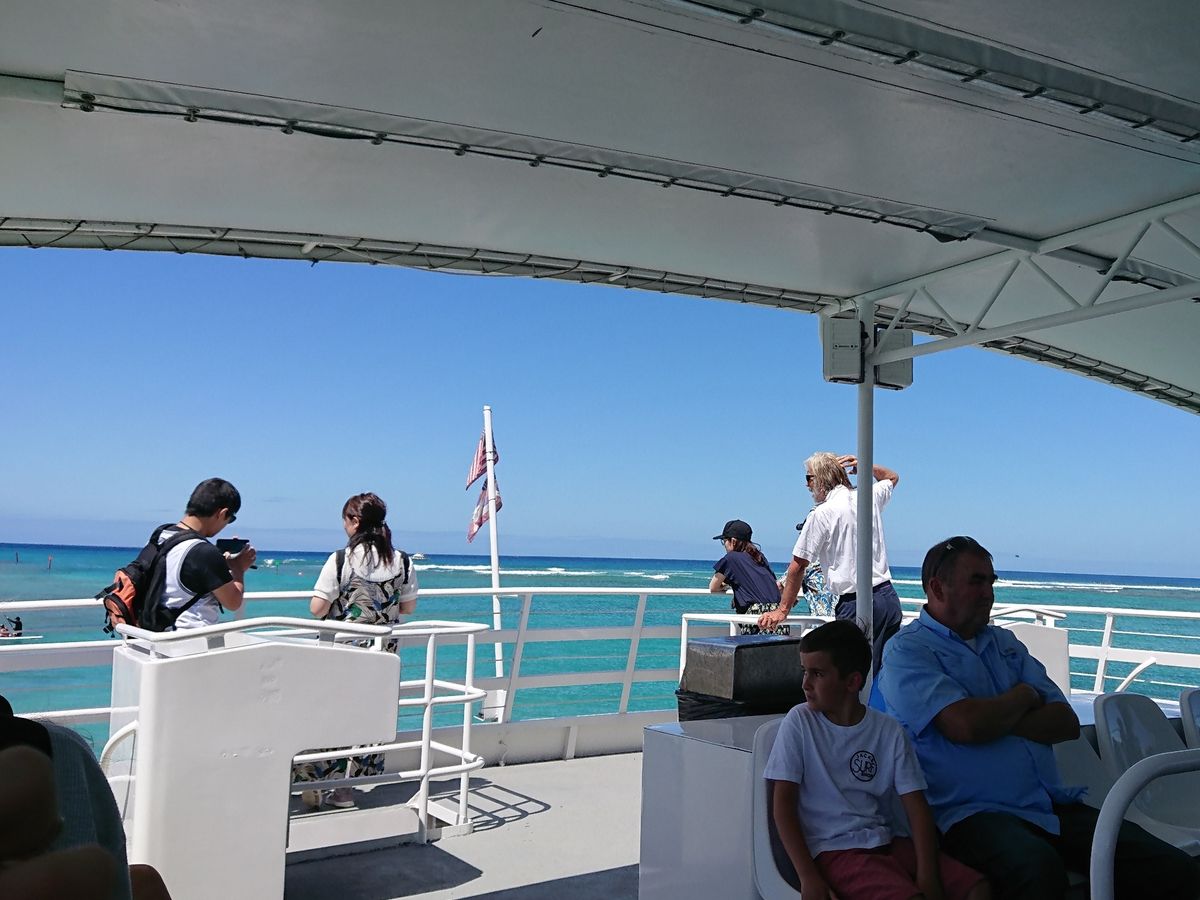 潜水艦までの移動もダイヤモンドヘッドを見ながらクルージングといった雰囲気です.少々船が揺れますので船酔いに弱い方は注意してください.