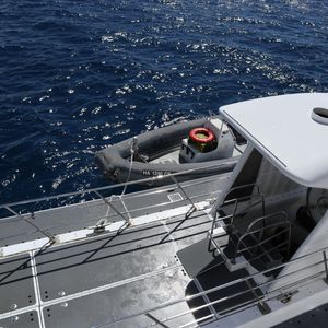 潜水艦までは桟橋から大き目のフェリーで移動し,浮上してきた潜水艦に搭乗します.