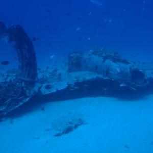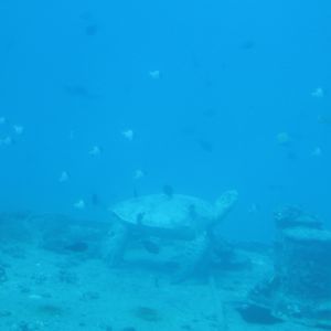 海底に沈む飛行機や船の周りでは、多くの魚たちを見られます!