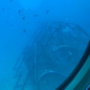 潜水艦に乗ってからは、日本で見ないようなカラフルな魚やウミガメ、沈んだ飛行機等色んな物が見えます。