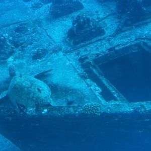 水深120ftぐらいまで潜りますが、浅い場所でも小魚や海亀を多数見ることができます。沈没船の真横にも行きます。興味深いのはYS-11の主翼部分が魚の家になっていることです。