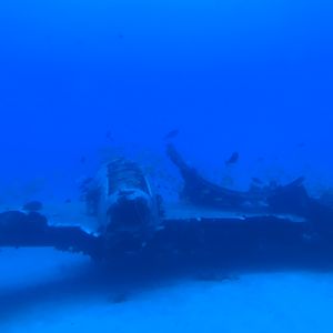 The day after arriving in Honolulu, I eagerly participated, but surprisingly, there were few fish, and it ended up being just a view of a decaying sunken ship and a fighter plane. I was a bit disappointed...