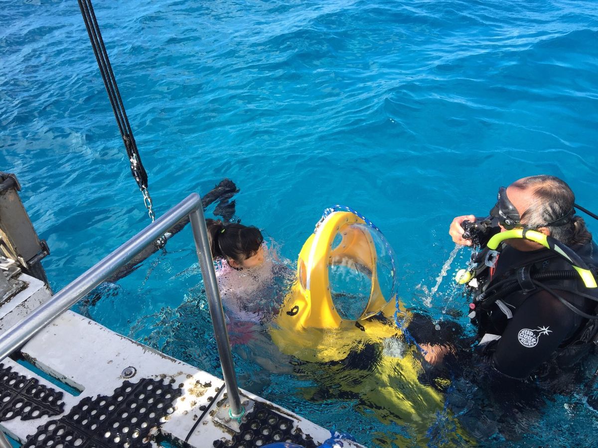 私は、家族4人で体験しました。水深30m程まで潜水しますが、そこはもう別世界。魚は、こんな動きをしていたのかと感心…潜水艦まで10分程のクルーズも気持ち良かったです。ただ、船酔いに弱い方は、要注意。当日私達家族は、少し波立っていたので事前に酔い止め飲んで準備しました。