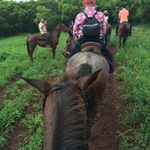 This was my third experience, so I didn't have the strong impression I had the first time, but my friends who experienced it for the first time seemed to find it fresh and were very happy. They shared that it was a top-class event during our seven-night stay in Hawaii. As the one who invited them on this trip, I felt very pleased about that. Since it was muddy from the rain, the horses were slipping, which seemed to add to the thrill.
