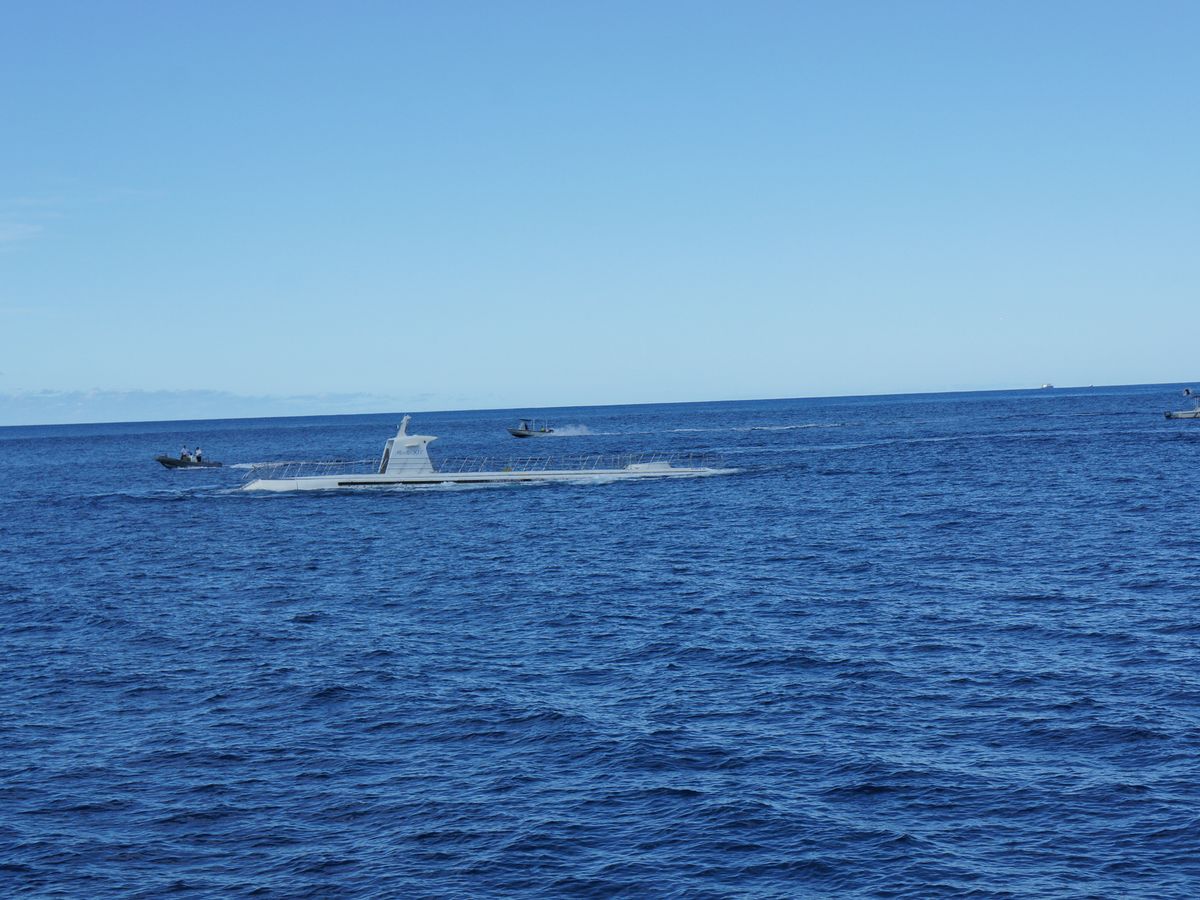 It was my first time on a submarine, and I participated at the request of my grandson who is in his first year of university. There were many fish around the reef, and there were turtles as well. However, I was hoping to see more colorful fish. Unfortunately, I wasn't able to take good photos underwater.