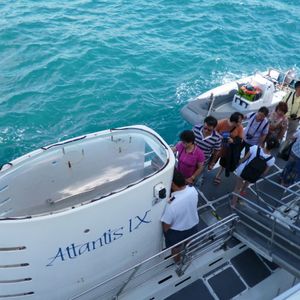 I participated at my son's request. I was worried about seasickness, but it was not a problem at all. There weren't many fish to see, but the kids were surprised to see the sunken airplane. It can be a bit cold inside the ship, so it might be a good idea to bring a jacket. Also, when getting on and off the submarine, you need to use a ladder for a few meters. It might be better to avoid wearing a mini skirt or a maxi skirt.