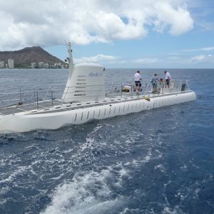 We took a boat from Waikiki out to sea and transferred to a submarine.