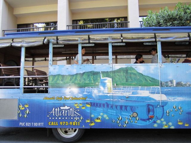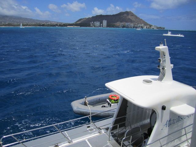 まずワイキキ沖にボートで行くのがよい。海から見るワイキキは最高です。そして海中では亀を見ることができました。ただ一点問題は、潜水艦からあがったあと、沖合の船上がゆれて結構酔います。酔い止め飲んだ方がいいかもしれません。