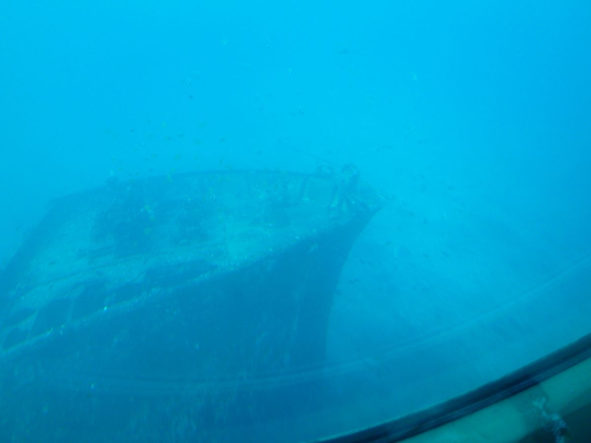 - You take a boat to reach the submarine, and the scenery is nice just offshore.
