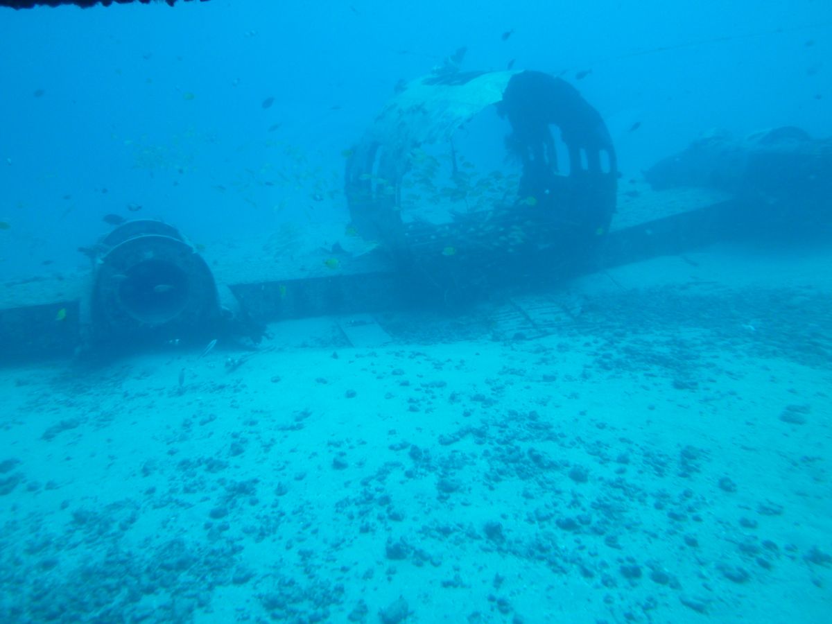 残念ながら海ガメは見れませんでしたが、漁礁、飛行機の残骸、難破船を棲み家にしている沢山の魚たちを見る事ができました。船酔いしてしまった母も魚が海中を動き回る様子を見て感動していました。