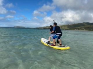 After snorkeling, we experienced stand-up paddleboarding (SUP). At first, it was challenging to maintain balance, but thanks to our guide's instructions, I was able to ride confidently.