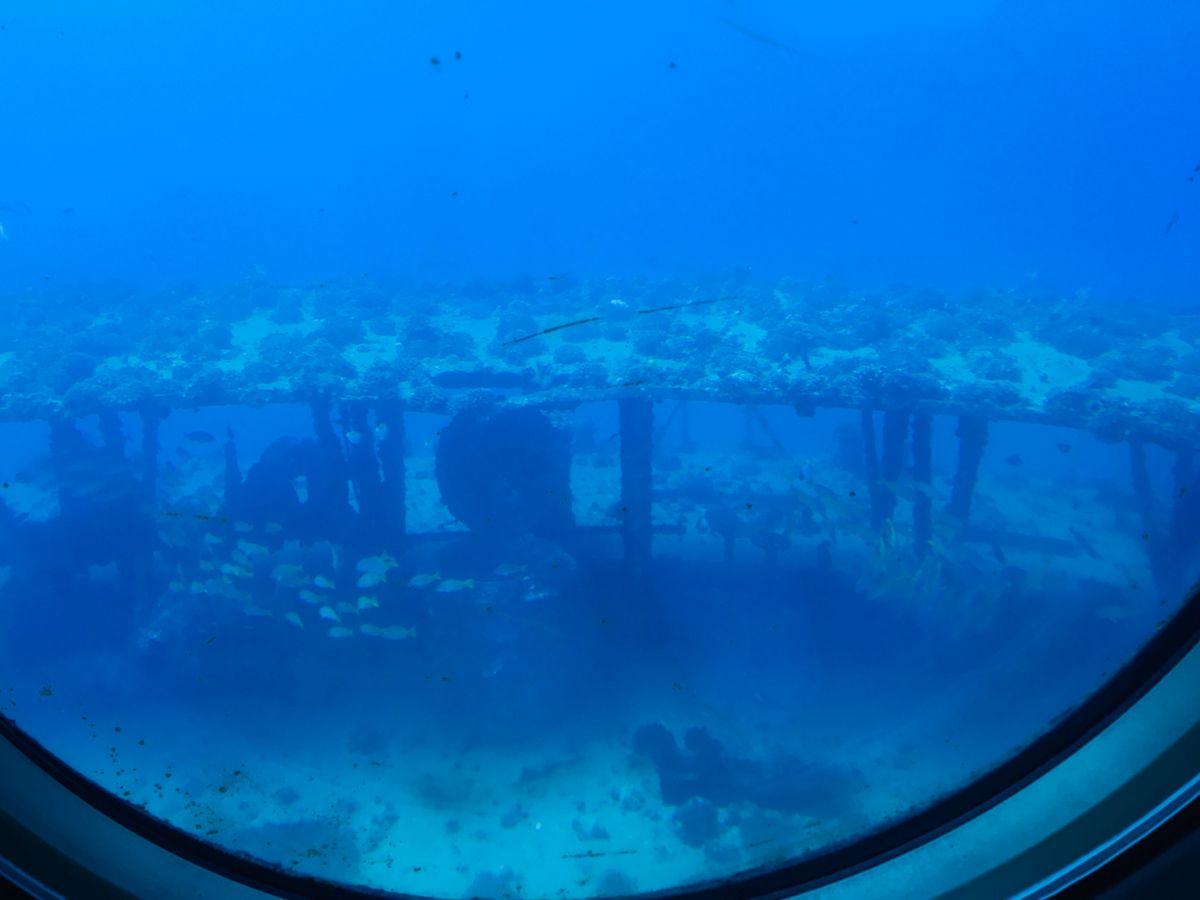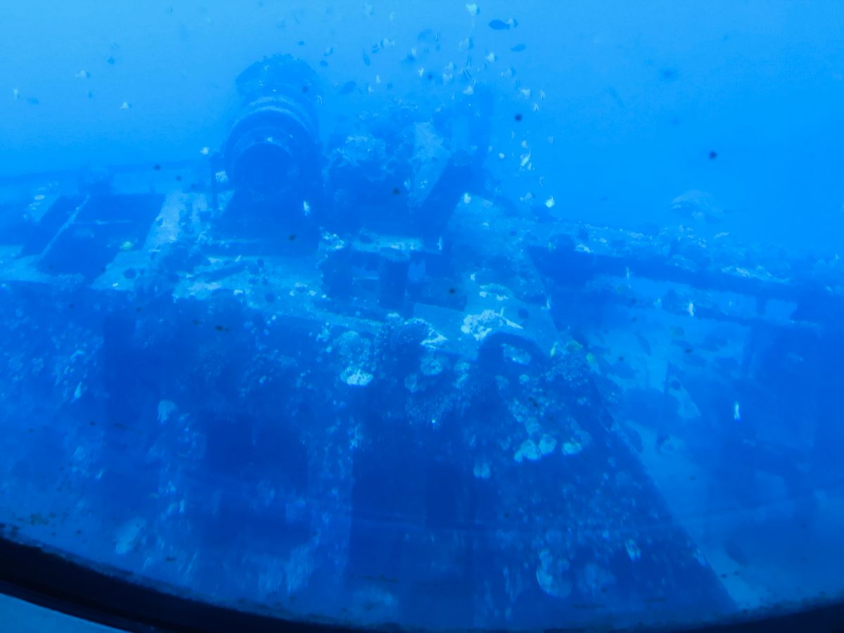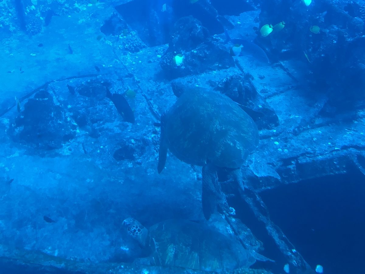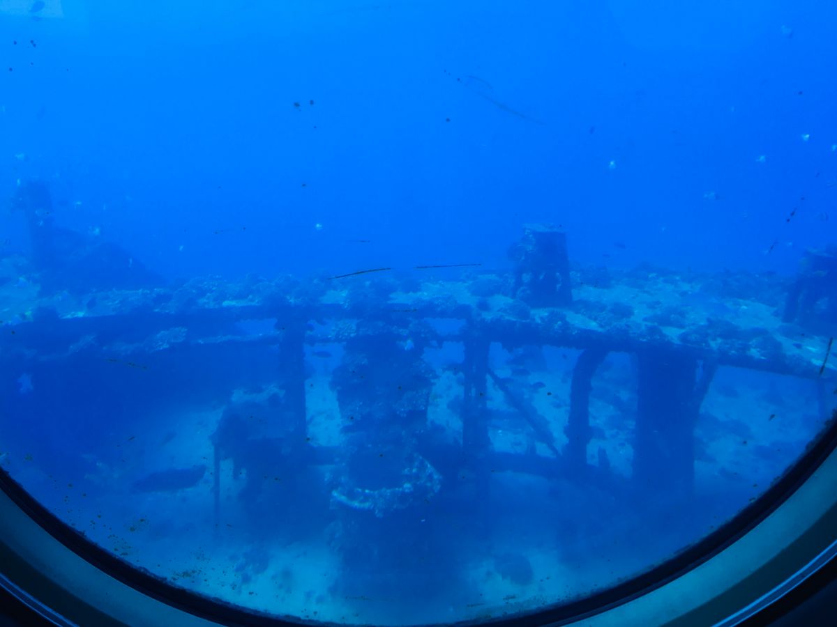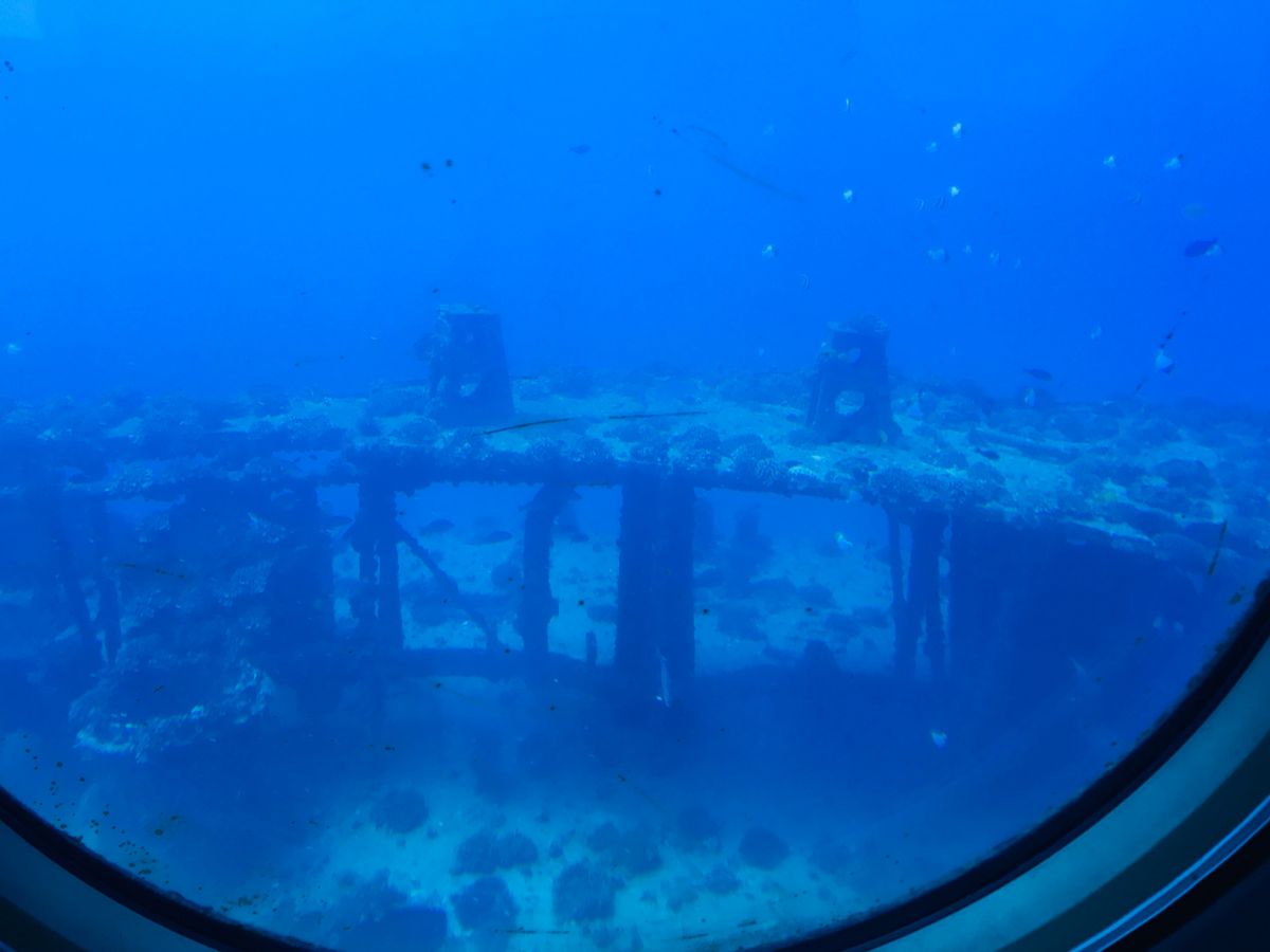 The view from the boat on the way to the submarine was beautiful. There weren't many fish near the submarine, but I was able to see a lot of small fish and sea turtles. Before getting on the submarine, there was someone who interpreted in Japanese, but the explanations from the crew inside the submarine were in English, so I couldn't understand what they were saying.
