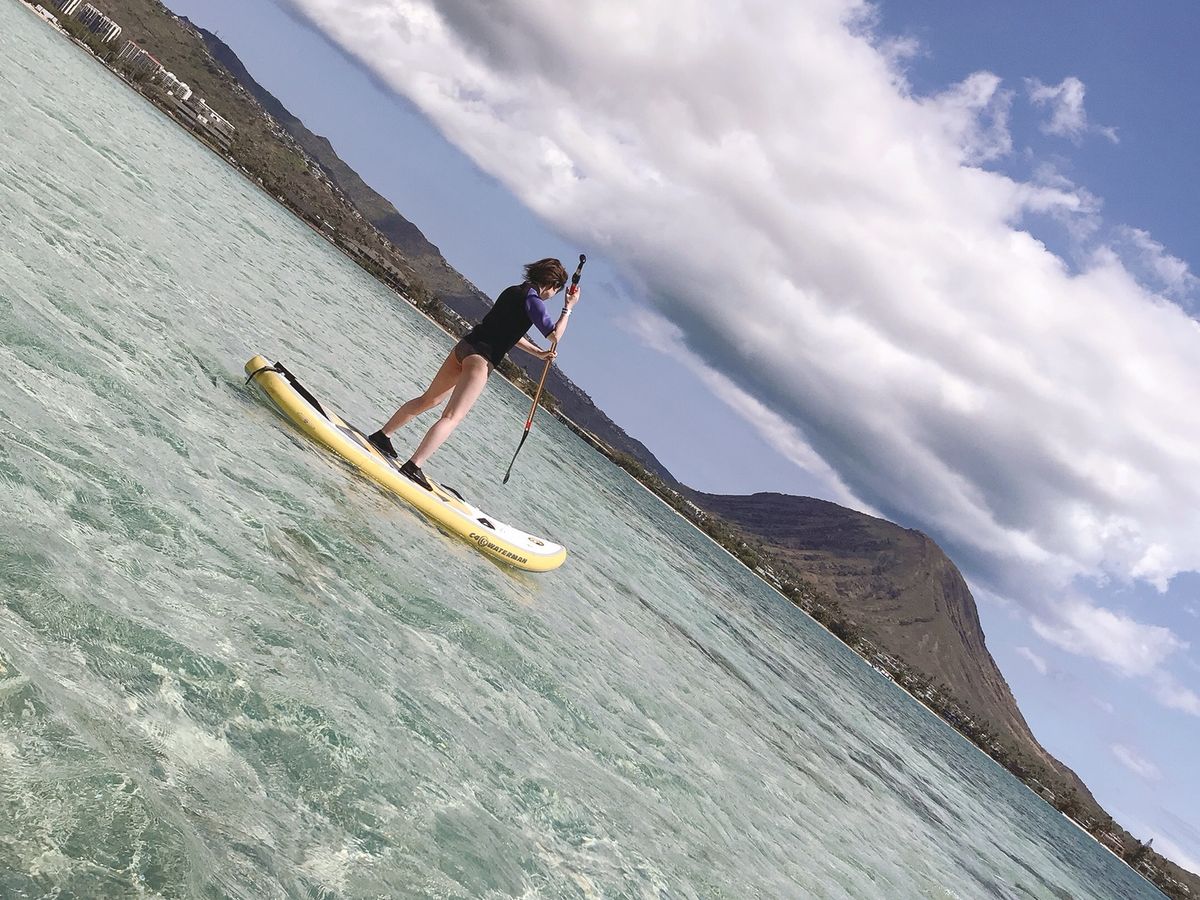 シュノーケリングの後はSUP体験で、初めはバランスを取るのが大変ですがガイドさんのご指導のおかげでしっかり乗る事ができました。