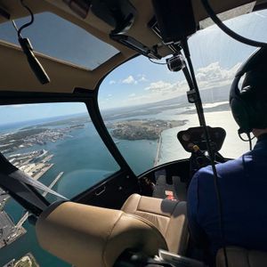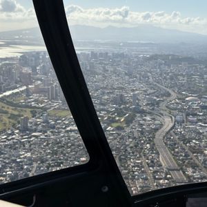 Other helicopter tours had weight restrictions that prevented us from participating, but this tour has a limit based on the total weight of all participants, so even those who are a bit chubby can join. The 60-minute tour over Oahu offers great views and is thrilling without windows! On the way there, the left side seats have a good view of Honolulu's cityscape, while the right side overlooks the ocean.