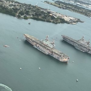 You can also see the hotel where I'm staying. Additionally, seeing Pearl Harbor from above is a special experience.