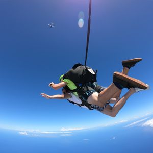 フリーフォール中は落ちているというより、飛んでいる感覚で、最高でした。カメラマン付きだとフリーフォール中は綺麗に撮ってもらえますが、パラシュートの間は撮れないです。インストラクターだと最後まで撮ってもらえるので一長一短と感じました。