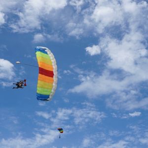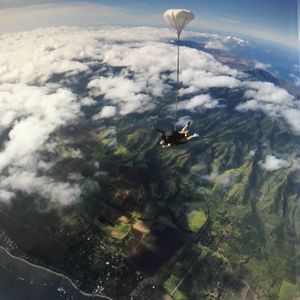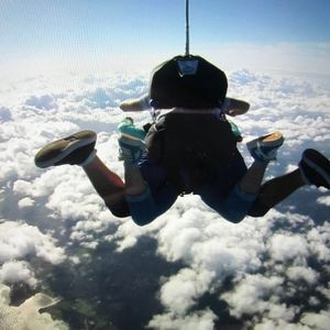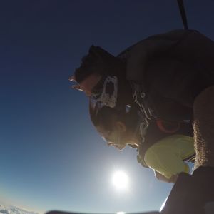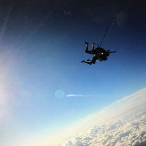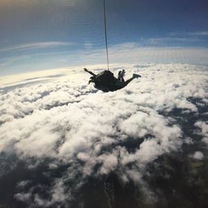 生憎の曇り空で14000フィートが8000フィートに変更、それでも充分楽しめた。雲の上は太陽が眩しくて、飛行機から飛び出してからパラシュートが開くまで言葉にできないほど最高の体験でした!