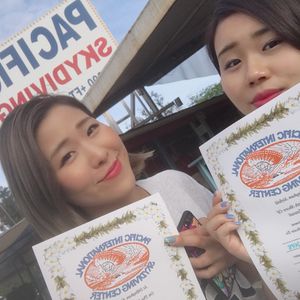 Since it was Golden Week, there were many Japanese people there. My instructor could speak a little Japanese, and I had a lot of fun flying. The only time I felt scared was when the airplane door opened in mid-air; after that, I just went with the flow.