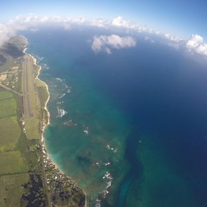 The weather was beautiful, and the sky and sea in Hawaii were incredibly clear!!! It might have been clearer than in Guam. Since we jumped around 7 AM, it was much more beautiful than during the day. The view was breathtaking!!!