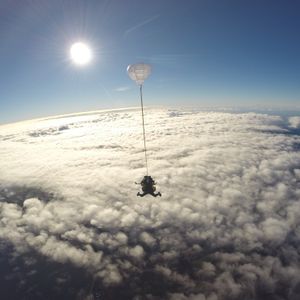 My first skydiving experience was a bit worrisome because it was raining in the morning, but by around 9 AM, the skies cleared up and I started to see blue skies. By the time I jumped, it was the best condition with a rainbow appearing. It's really wonderful to see a rainbow from above the clouds.
