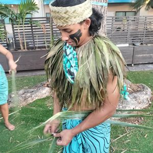 Although we had front-row seats, they were actually quite far back, which was disappointing. We were told we could participate in activities after the meal, but there was hardly any time, and I only managed to have a young man make a crown out of palm leaves for me (I was supposed to be able to make it myself).