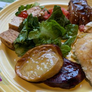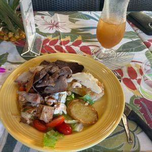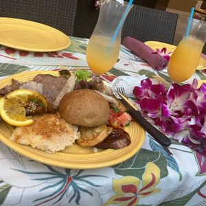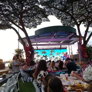 We participated as a couple. Although there were fewer Japanese attendees, a Japanese staff member came to our seats to explain various things. The venue is right next to Aloha Tower. Upon arrival, we were draped with leis and had a commemorative photo taken (which can be purchased later for about $30). After we took our seats, the plates were served, and the meal started. Since we had the Celebrity Plan, it was nice not to have to go get food ourselves, but the menu felt a bit lacking. An older couple sitting in front of us, who said they were from Indianapolis, seemed to not enjoy it and left quite a bit of food uneaten, eventually standing up and not returning. It seemed like they probably just left.