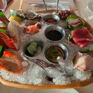 An older male waiter came to our table and kindly explained the drinks. When the seafood platter was served, I noticed that all the sashimi and oysters were served two pieces each, so I asked the waiter, "But there are three of us?" He replied, "This is for three people." Of course, we had paid for three with the voucher. It was clearly a plate for two, and we had to share the seafood, each getting only one or two pieces. We also ordered escargot for three, but there wasn't enough bread. When we asked for more, the waiter's attitude suddenly changed; he left without responding and just dropped the extra bread on the table without a word.