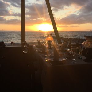 We made a reservation for dinner at this restaurant to celebrate our daughters' graduation during our trip to Hawaii. We booked for 6 PM and were seated by the ocean, allowing us to enjoy a beautiful sunset while dining. Our daughters were very happy.