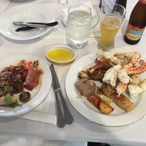 レストランから見れる夕暮れがとっても綺麗で、それを見ながら食事ができて最高でした。バイキングでいろんなものがありますが、とにかくカニが美味かったです。個人的には北海道で食べたものよりも美味しかったです。チップ込みでこの値段は絶対損はないと思います。