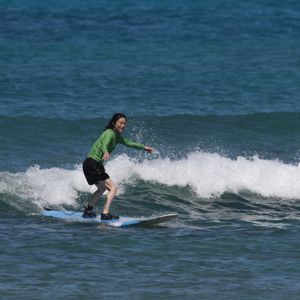 This was my second time participating in the lesson. It was a group session, and since we were surfing at the beach near Diamond Head in Waikiki, my mother and I took a walk on the beach while watching my daughter surf. With a two-hour lesson, it was a relaxing time for both my mother and me. The atmosphere in Waikiki is soothing. The staff at the school were also friendly and kind. I definitely plan to return to this school next time.