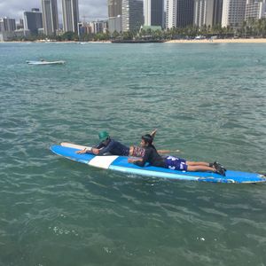 2人とも全くサーフィンをしたことがない状態で参加しました。普段運動もしておらず、相手はあんまり泳げないなかで思い切っての参加。ドキドキでした。セミプライベートレッスンを申し込んだので、ハワイ出身の現地の方が我々2人に対し一人ついてくれました。結論、パドリングはきつかったですけど、めっちゃくちゃ楽しかったです~!!インストラクターさんが、片言の日本語で「こいで~」、「今たって~」と言っていい波がきたらタイミングを教えてくれ、最後に波までひと押ししてくれるのですが、それだけで1回目からボードに立てました!8割方立てたと思います!疲れ果てましたが体験してよかったです!深さも顔が出るくらい、波もほどほどなので泳げなくても怖くないと思います!!またハワイ来たときは同じ先生にお願いしたいです!アダム先生!!ありがとうございました!!