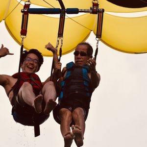 初めてのパラセイリングで緊張しましたが、楽しかったです!一緒に乗ったお客さんの中に日本人は誰もいなかったですが、いい人ばかりでみんなたくさん話かけてくれました。150メートルを選んで、パラセイリング自体は爽快でよかったのですが、そのスポットに行くまでけっこう長い時間ボートに乗って、そのボートがめちゃくちゃ揺れてそっちの方が怖かったです。