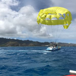 It was a bit scary, but when I flew high in the sky, I could see Diamond Head and the hotels of Waikiki beautifully! The ocean was a deep blue, and although I couldn't see the sea creatures, it felt amazing being blown by the wind! To have a fun experience, make sure to take motion sickness medication before you give it a try!