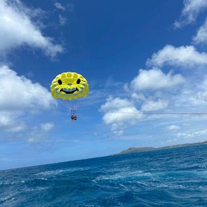 ジェットスキーとパラセーリングを体験しました。パラセーリングの高さはアップデートして良かったです。とても高くて普段味わえない高揚感でした。ジェットスキーはとても本格的で最初バランスを取るのが難しかったですが、次第に慣れてきて、楽しすぎてあっというまの時間でした。