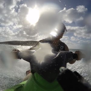 12月。当日は晴れてはいましたが、風もありマリンスポーツをするには少し寒い日ででした。インストラクターから一通り説明を聞きスタート。三本のパイロンを右回りに。アクセル全開で約30分周回!周回するだけなので慣れてくると飽きますが、太陽の光と海水を全身に浴びながら快走はホント楽しい!