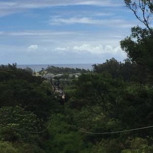 I took a bus from the Waikiki area for about an hour to participate. After getting off, I had to wait a bit for check-in due to the large number of participants, but there was a space to have light snacks until the start time. The zipline itself seems manageable even without English skills, but I missed some of what the driver said during check-in and on the bus to the zipline location. The guides for the zipline were very energetic and cheerful, making a great effort to entertain the participants, which was a lot of fun. We were blessed with good weather, and I was able to enjoy the magnificent views on most of the seven lines under clear skies. If the weather forecast doesn't look good, I recommend bringing a waterproof jacket instead of an umbrella. There is also a paid photography service, but if you ask the guides, they might take photos and videos for you. After finishing, I had some time before the bus departure, so I relaxed by the sea in front of the facility.