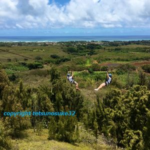 On May 30th, I tried ziplining, which I had been interested in for a while during the Hawaiian holiday. It was refreshing! The views were amazing! As a middle-aged couple at 49, we were as excited as kids! The apple bananas at the water station were delicious. Although no one spoke Japanese, we had a fantastic time. If the price were a bit lower...